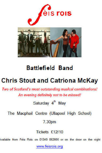 Saturday 16th February 2013 7.30pm Tickets: �8/�6/�3 tel 01854 613336